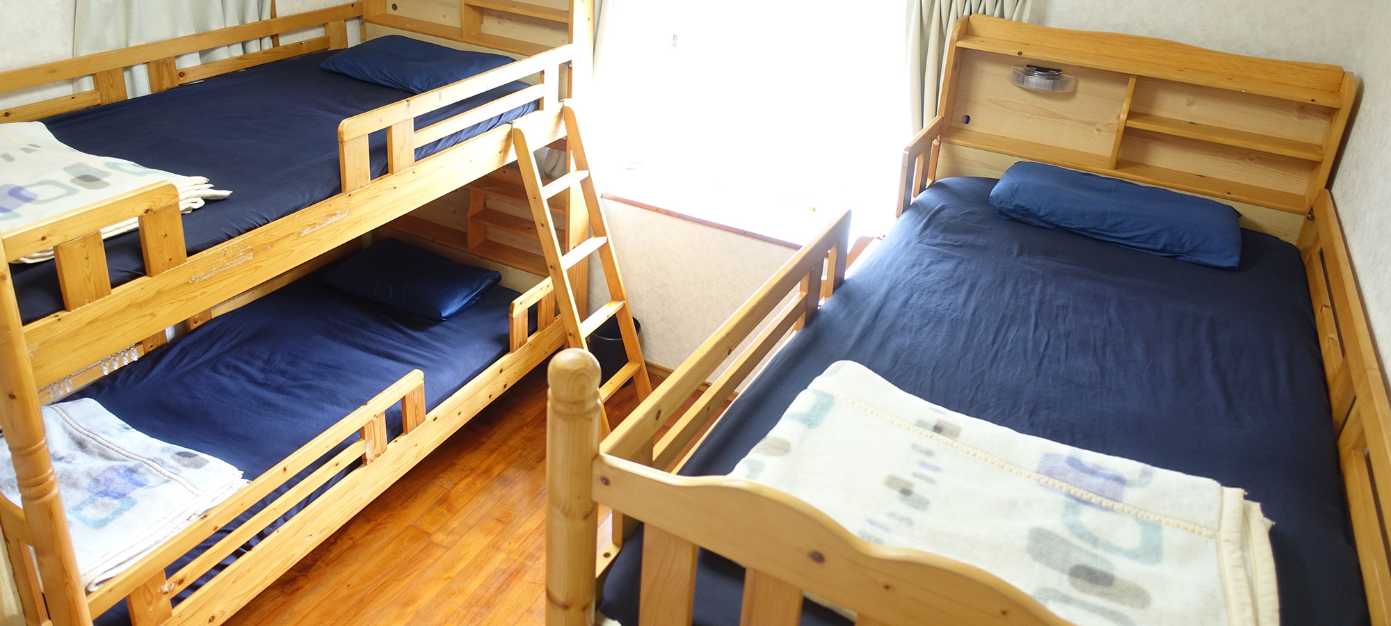 お部屋のタイプは男女別ドミトリータイプ(Aタイプ/Bタイプ)、個室(シャワールーム・トイレ付)があります。 またグループやお友達同士の団体様(5名様~10名様)で貸し切にすることも可能ですのでご希望の方はご相談ください。